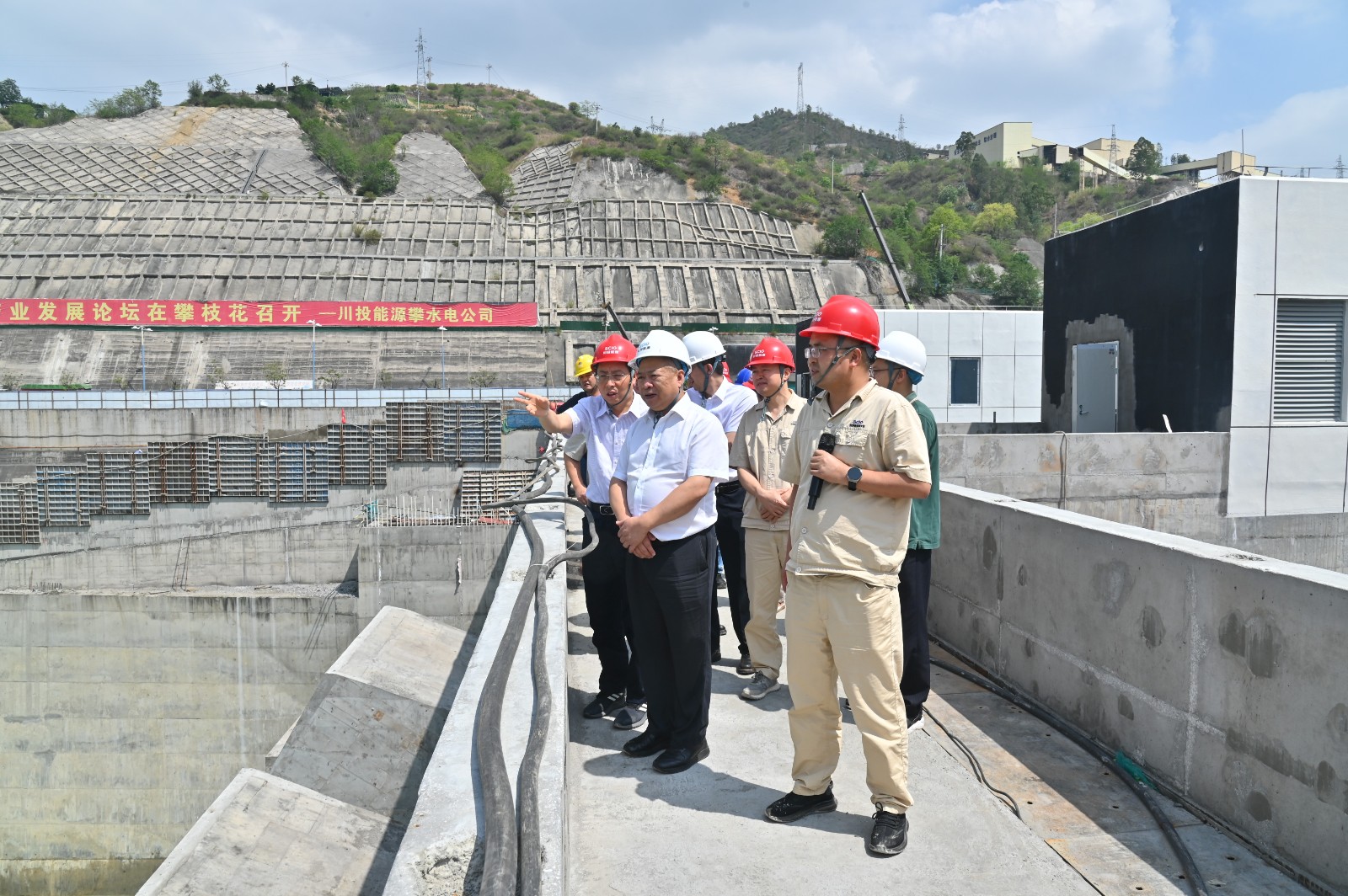 6月4日至5日,川投能源黨委書記、副董事長、總經(jīng)理楊洪率隊到銀江水電站工程建設現(xiàn)場督導檢查安全生產、電力保供及防汛工作,并看望慰問一線干部職工,川投能源副總經(jīng)理、攀水電公司黨總支書記、董事長徐孝剛參加檢查。