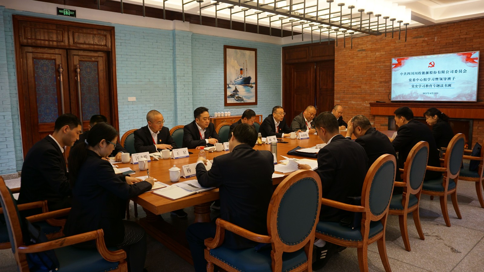 4月22日上午10:30,川投能源在川投嘉陽(yáng)黨性教育基地會(huì)議室舉辦黨委中心組學(xué)習(xí)暨黨員領(lǐng)導(dǎo)班子成員黨史學(xué)習(xí)教育專題讀書(shū)班,以領(lǐng)導(dǎo)班子成員先學(xué)一步、深學(xué)一層的生動(dòng)形式,深入貫徹落實(shí)習(xí)近平總書(shū)記在黨史學(xué)習(xí)教育動(dòng)員大會(huì)上的重要講話精神,帶頭引導(dǎo)公司廣大黨員干部學(xué)黨史、悟思想、辦實(shí)事、開(kāi)新局,推動(dòng)黨史學(xué)習(xí)教育不斷往深里走、往實(shí)里走。