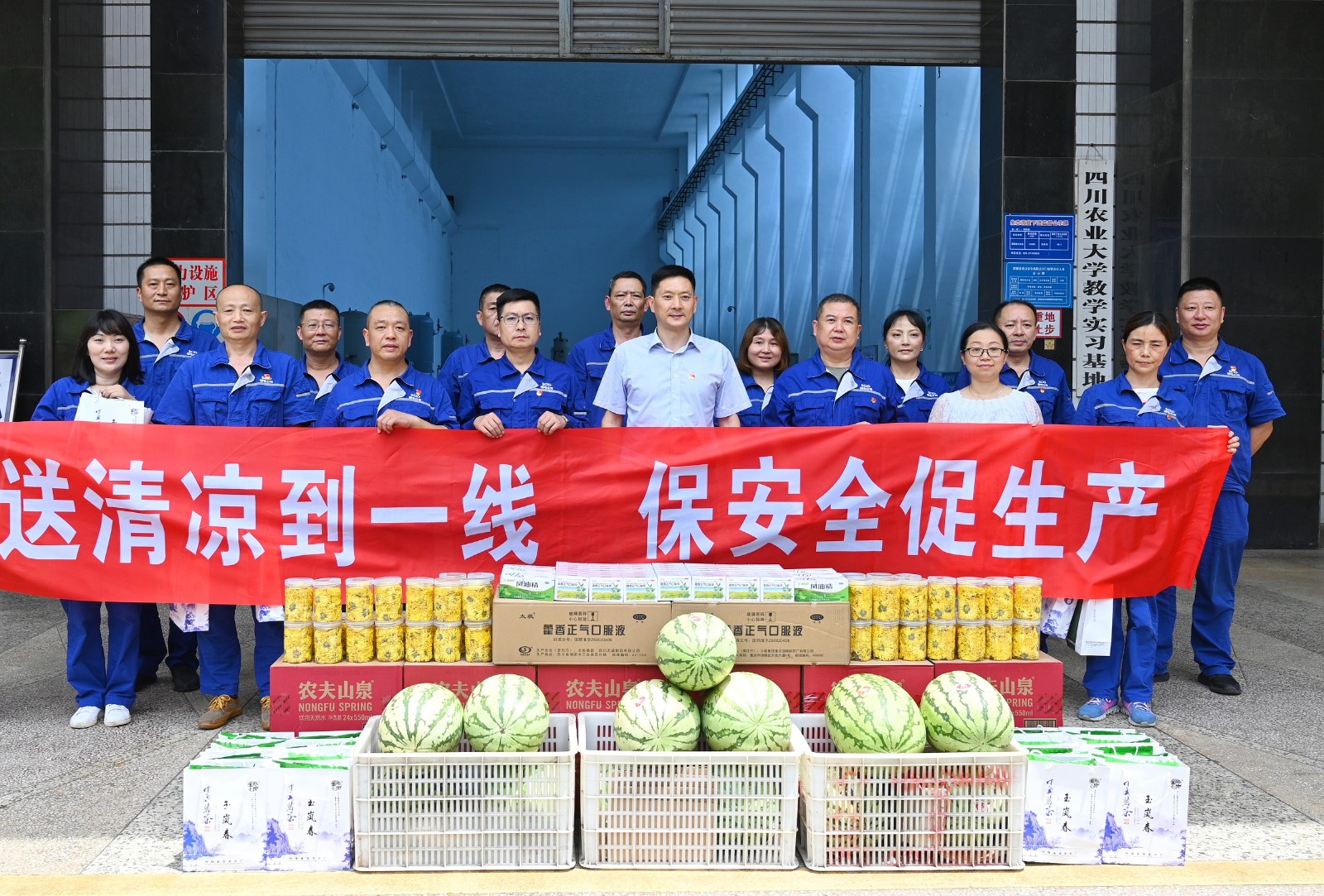 冉蘭平一行帶著對一線職工的牽掛與關懷,冒著酷暑來到槽漁灘公司電廠,為奮戰(zhàn)在工作崗位上的一線職工送上夏日里的一份心意。冉蘭平向電廠職工送上了菊花茶、藿香正氣液、清涼油、西瓜等防暑降溫用品,并叮囑他們在崗位上做好防暑降溫、安全生產(chǎn)工作。