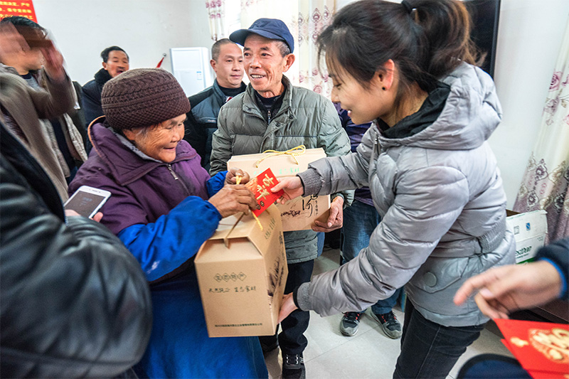 茶話會后,朱莉送上了田灣河公司支援村委會的辦公設(shè)備,并對在場貧困戶發(fā)放代表喜慶、祝福的新年紅包和慰問品。隨后在村黨支部曾書記帶領(lǐng)下,田灣河公司一行人實地上門走訪部分行動不便未能參加活動的貧困戶,關(guān)心他們的生活起居、衣食住行,并幫助他們打掃衛(wèi)生、貼春聯(lián)、送祝福。一片忙碌的景象,讓貧困戶提前感受到節(jié)日的喜慶。