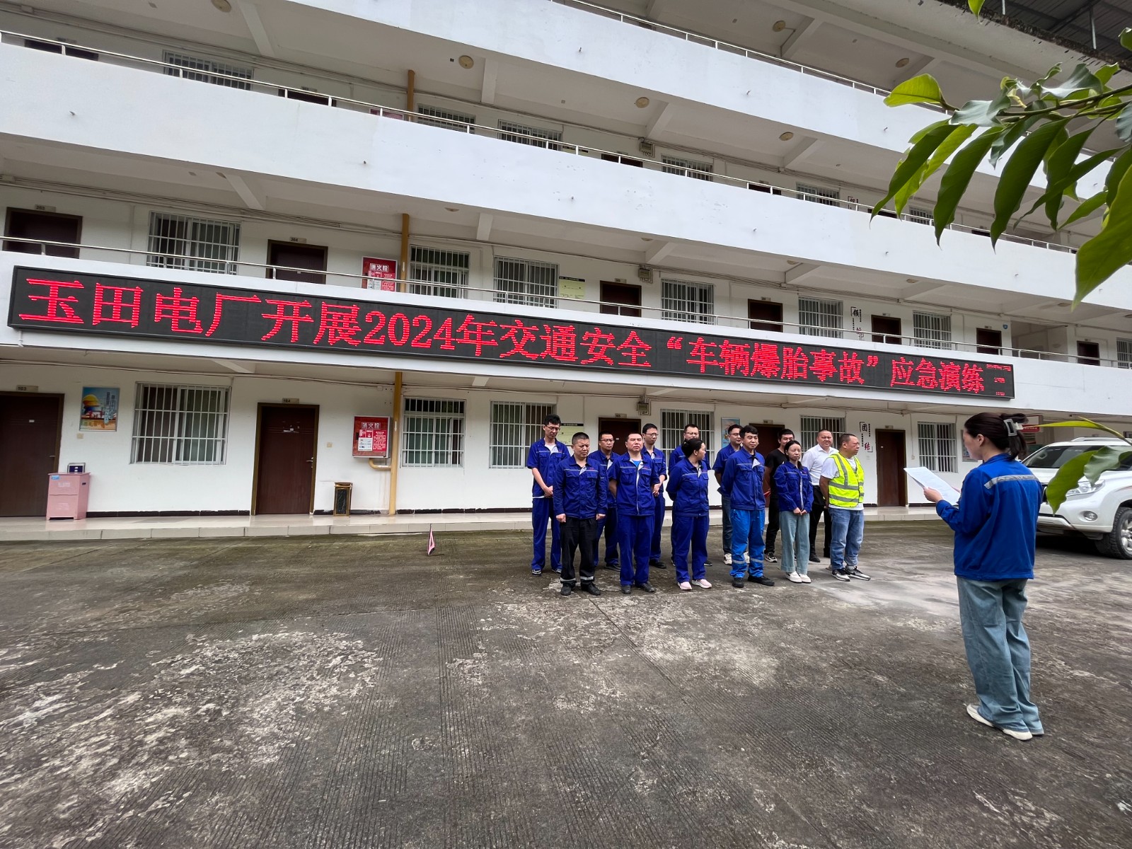 玉田電廠進(jìn)廠公路為鄉(xiāng)村水泥道和原始基坑路,路面窄、彎道多且存在駕駛視野盲區(qū),汛期雨后道路積水多、山上滾石現(xiàn)象時有發(fā)生,道路交通存在安全風(fēng)險隱患。為提高電廠駕駛員的應(yīng)急響應(yīng)能力,確保發(fā)生車輛爆胎等突發(fā)意外時能迅速有效處置,提高自救能力,近日,玉田電廠開展車輛爆胎應(yīng)急演練。