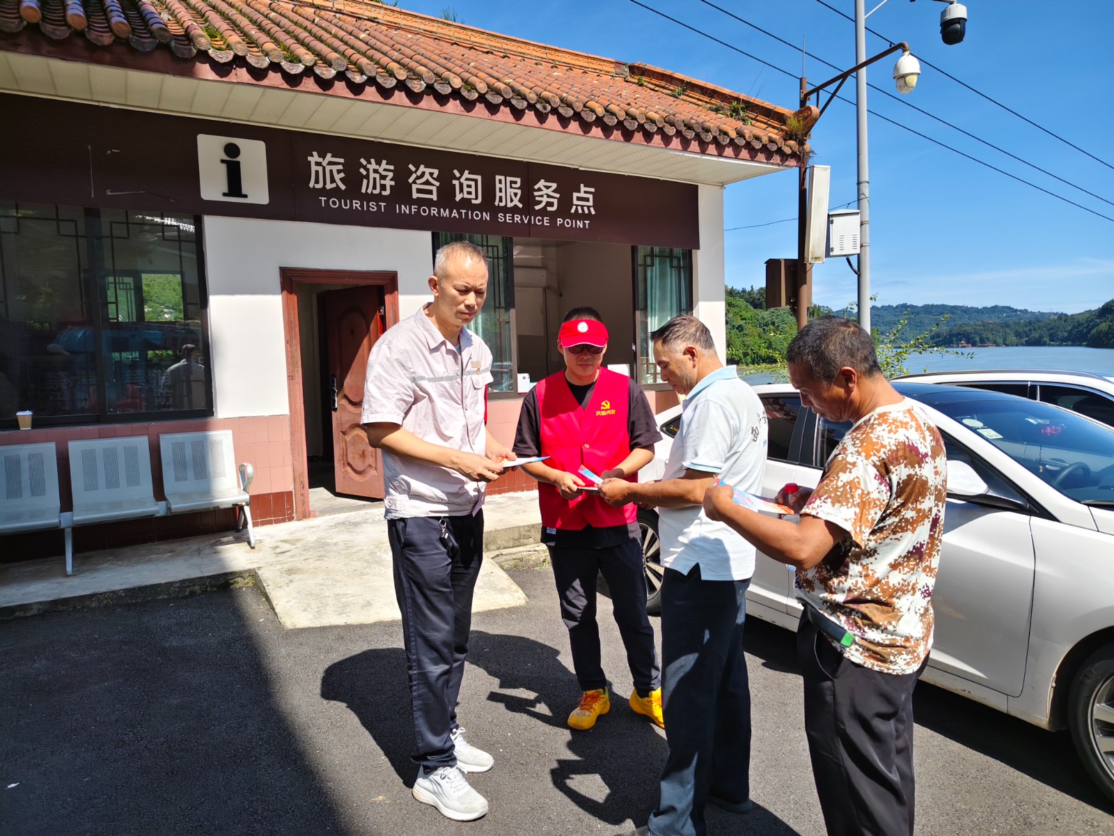 為深入開展企地共建工作,充分發(fā)揮黨支部的戰(zhàn)斗堡壘和黨員先鋒模范作用,國慶、中秋“雙節(jié)”期間,槽漁灘電廠黨支部星光黨員先鋒隊(duì)選派4名黨員組成志愿服務(wù)隊(duì),走進(jìn)槽漁灘景區(qū)為來訪游客提供志愿服務(wù)。
