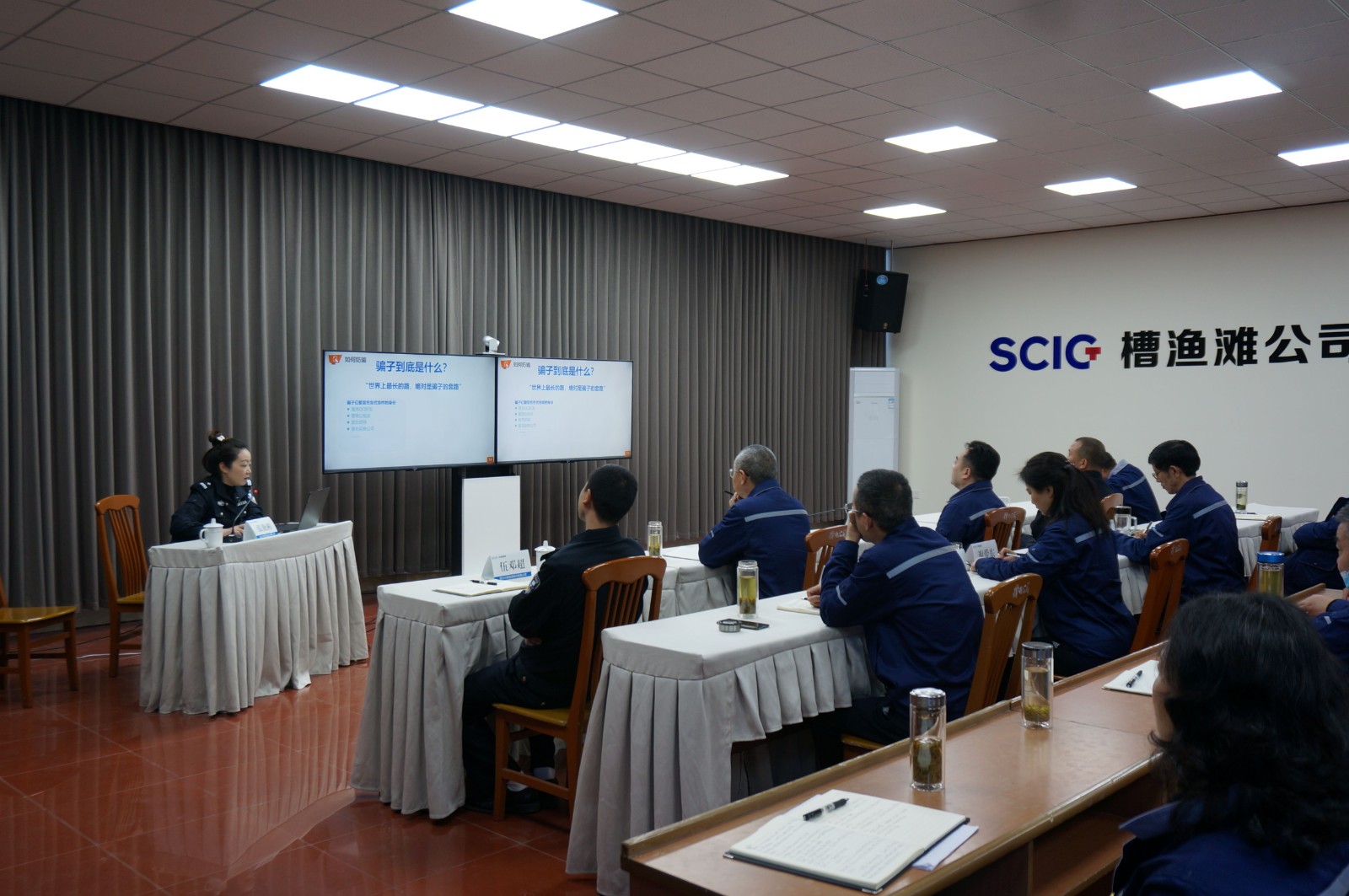 4月15日是“全民國家安全教育日”,一方面為宣傳貫徹習(xí)近平總書記對打擊電信網(wǎng)絡(luò)詐騙犯罪工作重要指示精神,另一方面也增強(qiáng)公司員工和駕駛員的交通安全意識,提高遵守交通法規(guī)的自覺性,川投能源槽漁灘公司特邀請洪雅縣公安局刑警大隊(duì)和交警大隊(duì)到公司進(jìn)行預(yù)防電信網(wǎng)絡(luò)詐編培訓(xùn)講座和交通安全法規(guī)培訓(xùn)講座。公司黨委書記、董事長楊濤和在家的公司經(jīng)營班子成員、中層以上干部和所有財(cái)務(wù)人員共40余人參加這次培訓(xùn)。