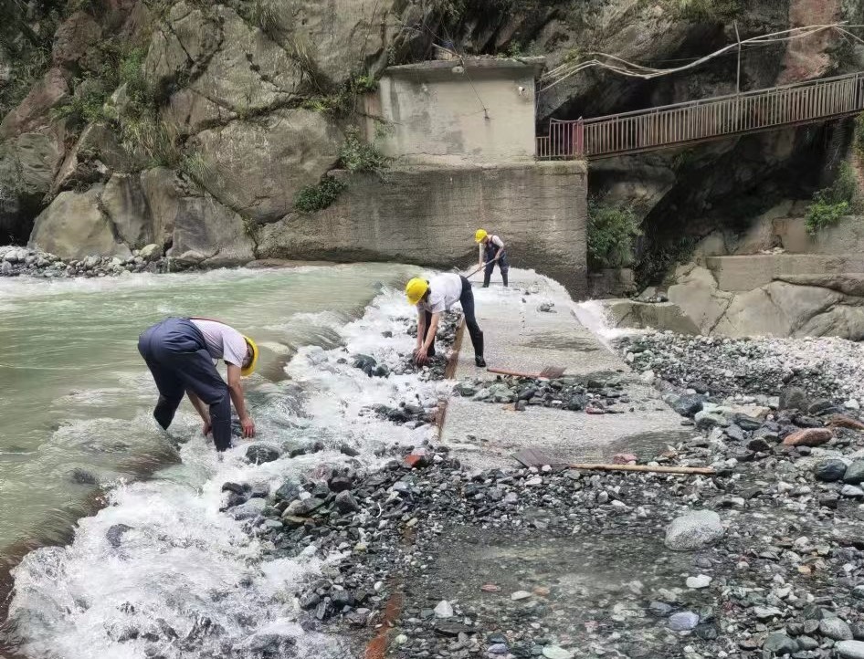 連日驟減的來水量迫使天彭電力鳳鳴湖水庫水位只能保持在低位運(yùn)行。此刻,對保供者來說,每一滴來水都彌足珍貴,而做好引水工作就成為了保障發(fā)電生產(chǎn)和城區(qū)供水的重中之重。天彭電力上下聯(lián)動,全員作戰(zhàn),沙金車間、鳳鳴橋車間一線堅(jiān)守責(zé)任到崗、迅速行動,頂著烈日清理底格欄柵壩壩面砂石、庫區(qū)進(jìn)水閘浮渣和前池淤積物,嚴(yán)格執(zhí)行“每日一小撈、三日一大撈、洪水天天撈”制度,做到多引水和保水源“兩手抓、兩手硬”,從源頭上守住保水保電的“生命線”。