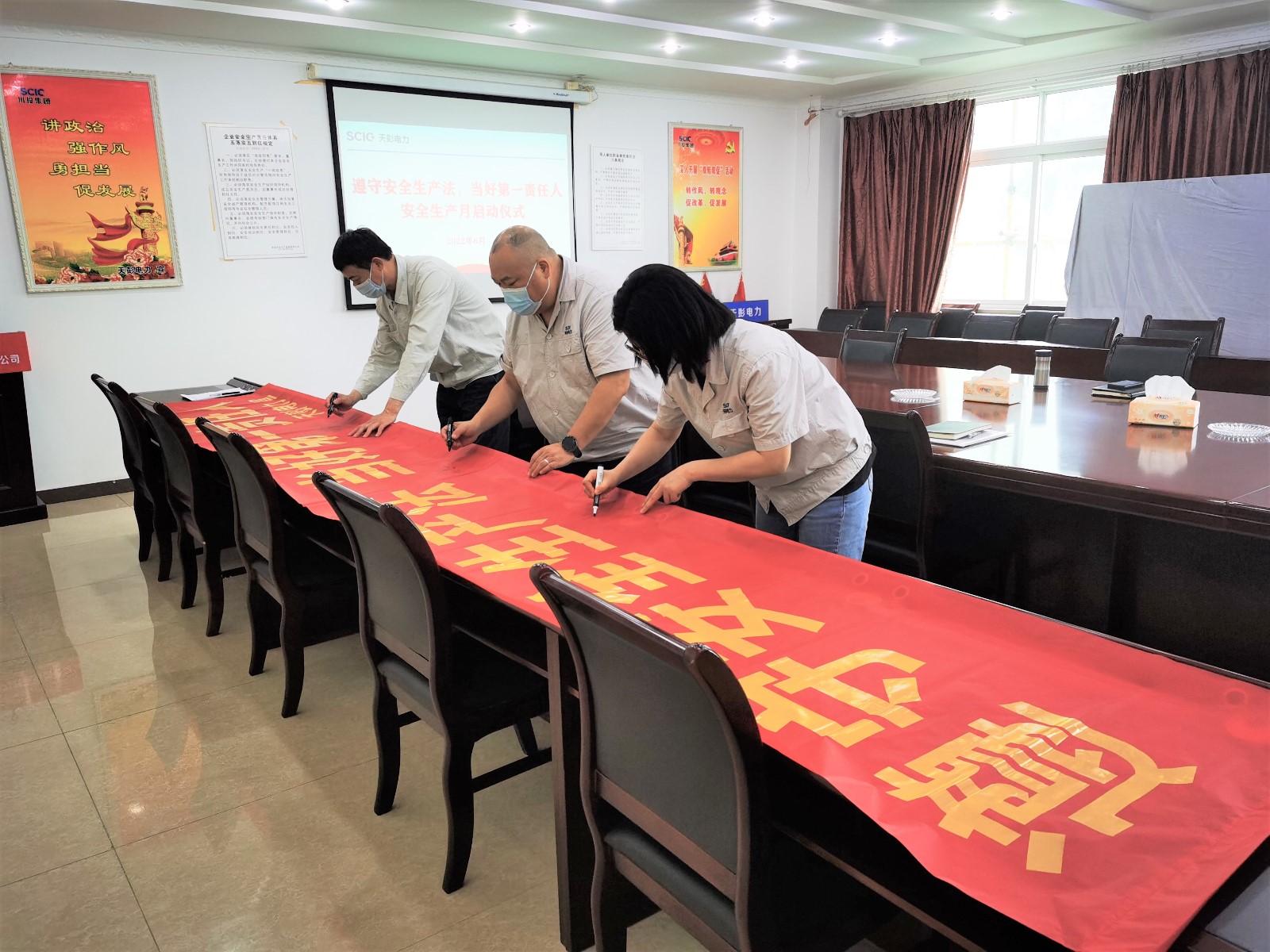在“安全生產(chǎn)月”活動(dòng)啟動(dòng)儀式上,公司黨總支書(shū)記、董事長(zhǎng)、總經(jīng)理陳忠向全體干部員工發(fā)出活動(dòng)倡議,希望大家在習(xí)近平總書(shū)記關(guān)于安全生產(chǎn)的系列重要論述和指示批示精神的舉旗定向、掌舵領(lǐng)航下,堅(jiān)定不移深入宣貫落實(shí)國(guó)家新《安全生產(chǎn)法》,切實(shí)提升安全生產(chǎn)法治意識(shí),當(dāng)好各級(jí)各崗位安全生產(chǎn)責(zé)任人,凝心聚力為迎接黨的二十大勝利召開(kāi)營(yíng)造濃厚安全生產(chǎn)氛圍。為此他倡議:第一要強(qiáng)化學(xué)習(xí)壓實(shí)安全生產(chǎn)責(zé)任,第二要豐富活動(dòng)提升安全生產(chǎn)能力,第三要排查隱患當(dāng)好安全生產(chǎn)哨兵,第四要提升文化夯實(shí)安全生產(chǎn)基礎(chǔ)。公司員工們積極響應(yīng)倡議,在活動(dòng)橫幅上留下自己的簽名,鄭重作出了壓實(shí)安全責(zé)任、淬煉安全技能的承諾。