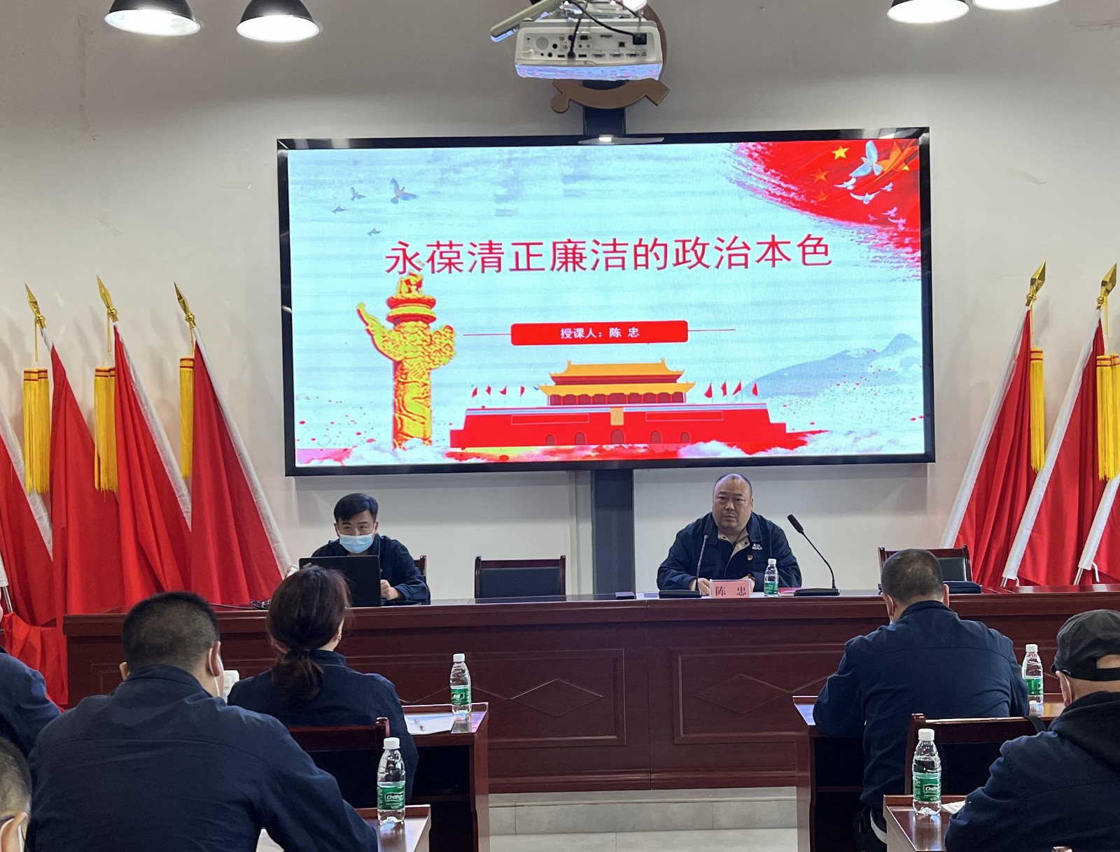 隨后陳忠從永葆清正廉潔的政治本色,要把增強黨性修養(yǎng)作為終身課題;永葆清正廉潔的政治本色,要嚴(yán)以律己、心存敬畏;永葆清正廉潔的政治本色,要傳承優(yōu)良作風(fēng),涵養(yǎng)浩然正氣;永葆清正廉潔的政治本色,要堅持秉公用權(quán),站穩(wěn)人民立場四個方面闡述了深化黨風(fēng)廉政建設(shè)、營造風(fēng)清氣正政治氛圍的重要意義和主要舉措;強調(diào)大家必須牢記,全面從嚴(yán)治黨永遠(yuǎn)在路上,黨的自我革命永遠(yuǎn)在路上,決不能有松勁歇腳、疲勞厭戰(zhàn)的情緒,必須持之以恒推進全面從嚴(yán)治黨,深入推進新時代黨的建設(shè)新的偉大工程,以黨的自我革命引領(lǐng)社會革命。黨課結(jié)束后,大家共同觀看了由中央宣傳部攝制的大型電視專題片《領(lǐng)航》之“自我革命”,進一步鞏固了以嚴(yán)的基調(diào)強化正風(fēng)肅紀(jì)、堅決打贏反腐敗斗爭的信心和決心。