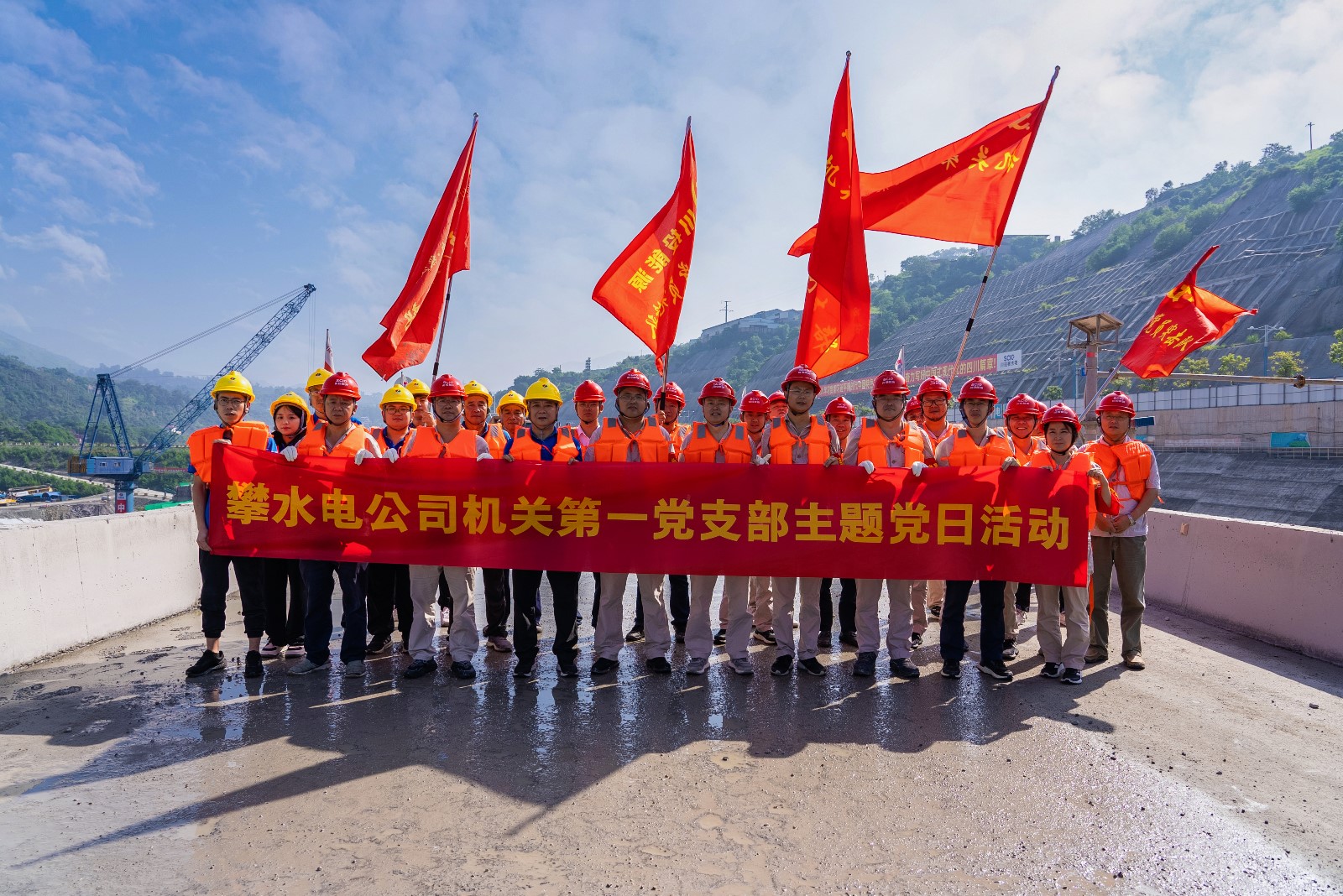 為認(rèn)真貫徹落實(shí)近期中共中央政治局常務(wù)委員會研究部署防汛抗洪救災(zāi)和災(zāi)后恢復(fù)重建工作時,關(guān)于“基層黨組織和廣大黨員干部要充分發(fā)揮戰(zhàn)斗堡壘作用和先鋒模范作用,在防汛抗洪救災(zāi)一線挑重?fù)?dān)、當(dāng)先鋒、打頭陣”的重要指示要求。9月3日,攀水電黨總支在銀江水電站施工現(xiàn)場組織開展9月主題黨日活動,機(jī)關(guān)第一、第二黨支部、水電五局銀江項目部黨支部黨員、入黨積極分子、職工志愿者共計30余人參加。
