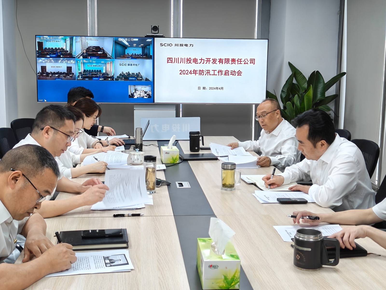 公司領(lǐng)導班子成員、各部門負責人在主會場參加會議,各所屬公司及電廠相關(guān)人員在各視頻會議室參會。