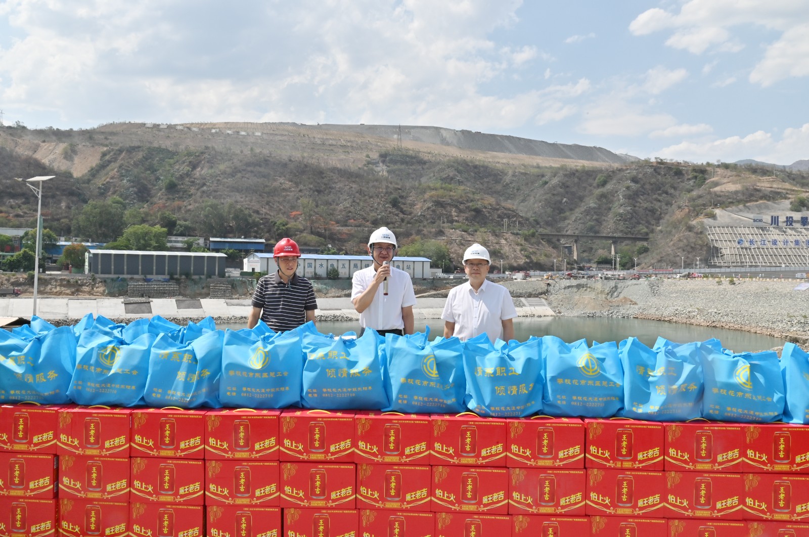隨后,凌永航一行向銀江水電站現(xiàn)場各參建單位的一線工友們送上了清涼飲品、洗衣液、洗發(fā)露等400余份清涼物資,叮囑工友在烈日烘烤的工作中,一定要全面做好各類防護措施,注意防暑降溫,合理安排工作時間,注意自身安全和健康。