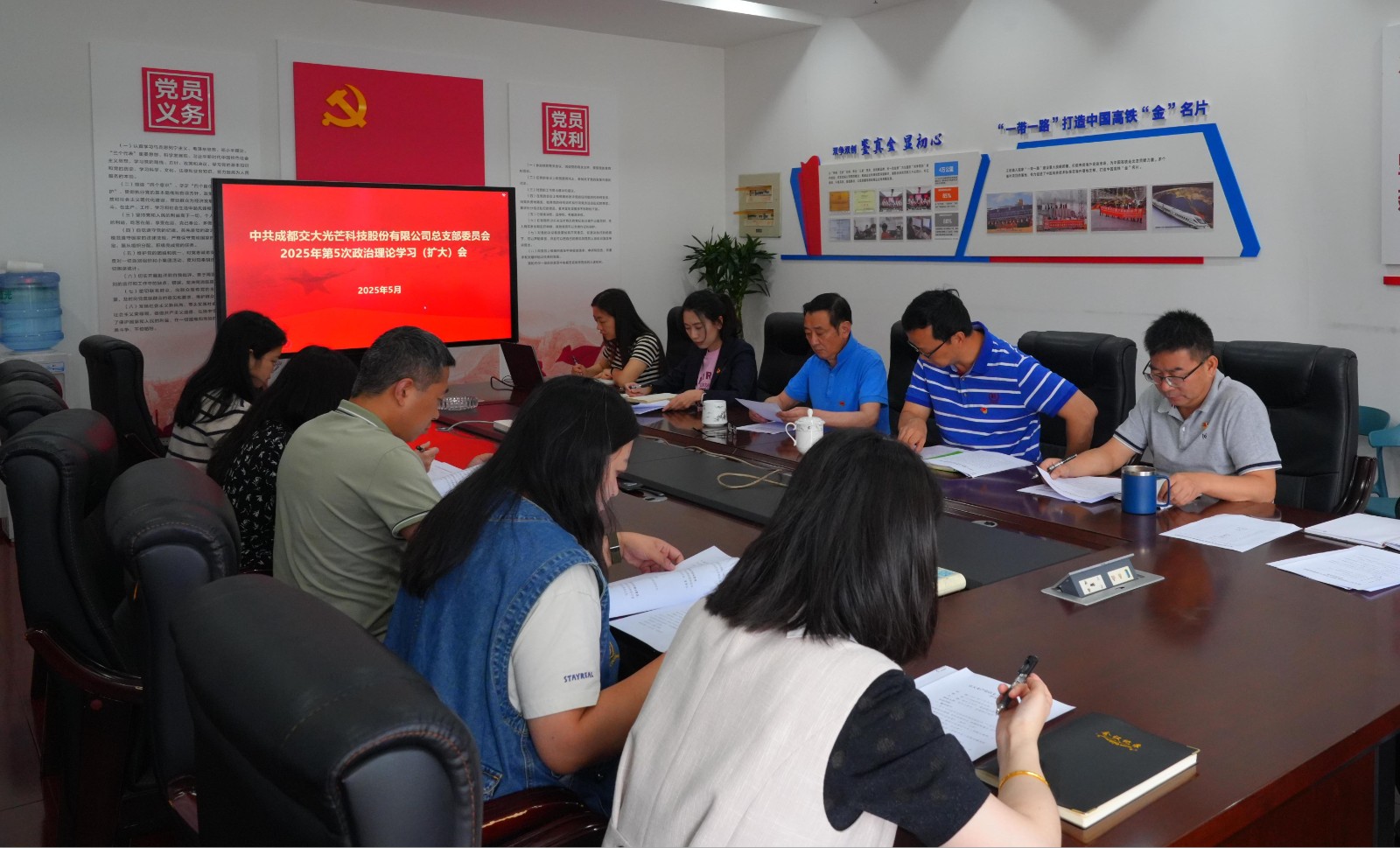 5月26日,交大光芒黨總支召開2025年第5次政治理論學(xué)習(xí)會。會議由黨總支書記、常務(wù)副總經(jīng)理王濤主持,黨總支委員、經(jīng)營班子成員以及各支部委員、黨群工作部、紀檢工作部負責(zé)人參加學(xué)習(xí)。