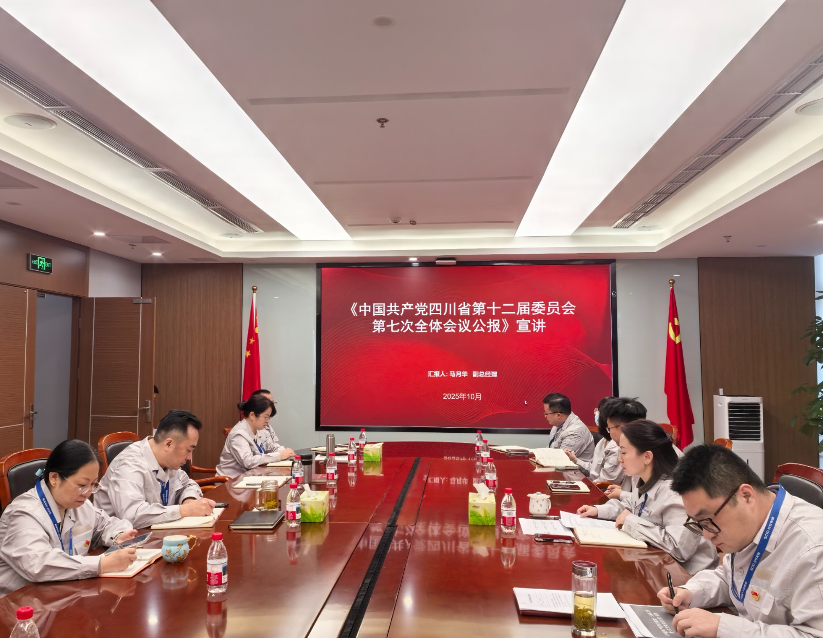 接著,川投電力副總經(jīng)理馬月華宣講了省委第十二屆七次全會精神,會議強調(diào),全體黨員干部要立足崗位、找準(zhǔn)落實全會精神的結(jié)合點,為奮力譜寫中國式現(xiàn)代化四川新篇章作出新的更大貢獻;要結(jié)合自身思想和工作實際,深刻領(lǐng)會全會精神實質(zhì)、在本職崗位上踐行初心使命、發(fā)揮先鋒模范作用;要將全會精神轉(zhuǎn)化為強大的精神動力和務(wù)實的工作舉措,勇于擔(dān)當(dāng),敢于作為,爭當(dāng)崗位先鋒,在服務(wù)大局、推動發(fā)展、服務(wù)群眾中展現(xiàn)新時代共產(chǎn)黨員的風(fēng)采。