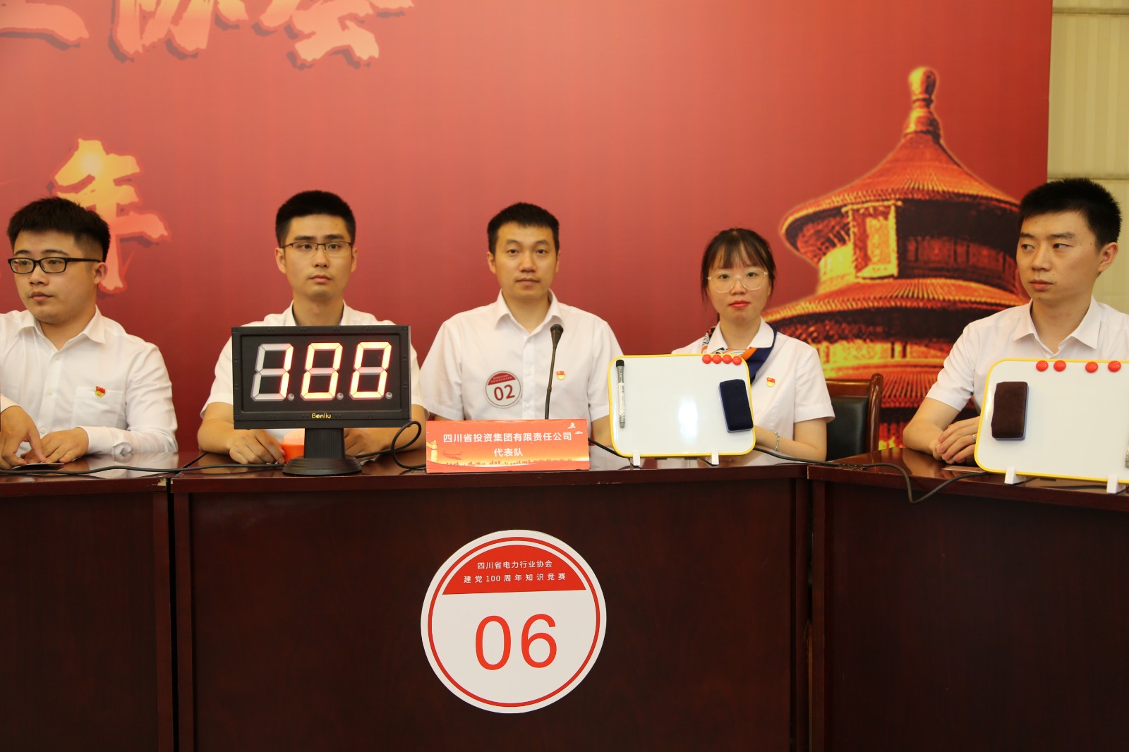 6月2日下午2:30,由四川省電力行業(yè)協(xié)會(huì)主辦的“建黨100周年知識(shí)競賽”拉開帷幕,公司3名員工組成“川投戰(zhàn)狼”隊(duì),代表川投集團(tuán)在賽場上與其余7支隊(duì)伍展開激烈的“腦力大比拼”,經(jīng)過必答題、搶答題、風(fēng)險(xiǎn)題、附加題4輪角逐,最終奪得亞軍,川投集團(tuán)獲評(píng)“優(yōu)秀組織獎(jiǎng)”。集團(tuán)公司副總經(jīng)理張昊受邀出席并頒獎(jiǎng)。